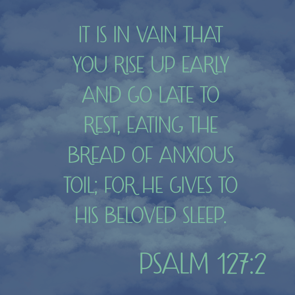 “It is in vain that you rise up early and go late to rest, eating the bread of anxious toil; for He gives to His beloved sleep.” Psalm 127:2