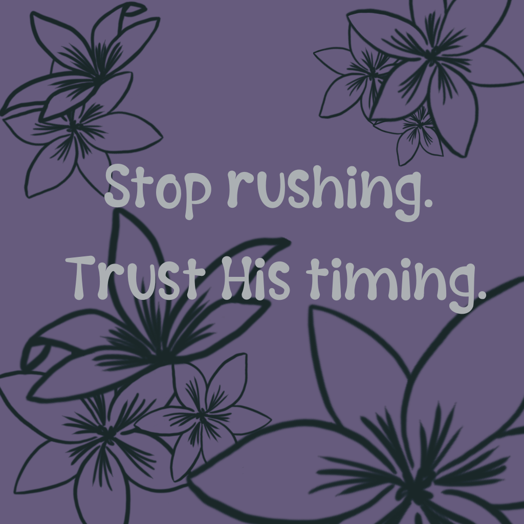 Stop rushing. God doesn’t call us to rush. He calls us to trust Him. To trust His timing. To trust that He already knows how long we’ll take to do things and He’s not hindered by anything. We’re not throwing off His plans and thwarting all His work if we rest for five minutes. He intends for us to rest.