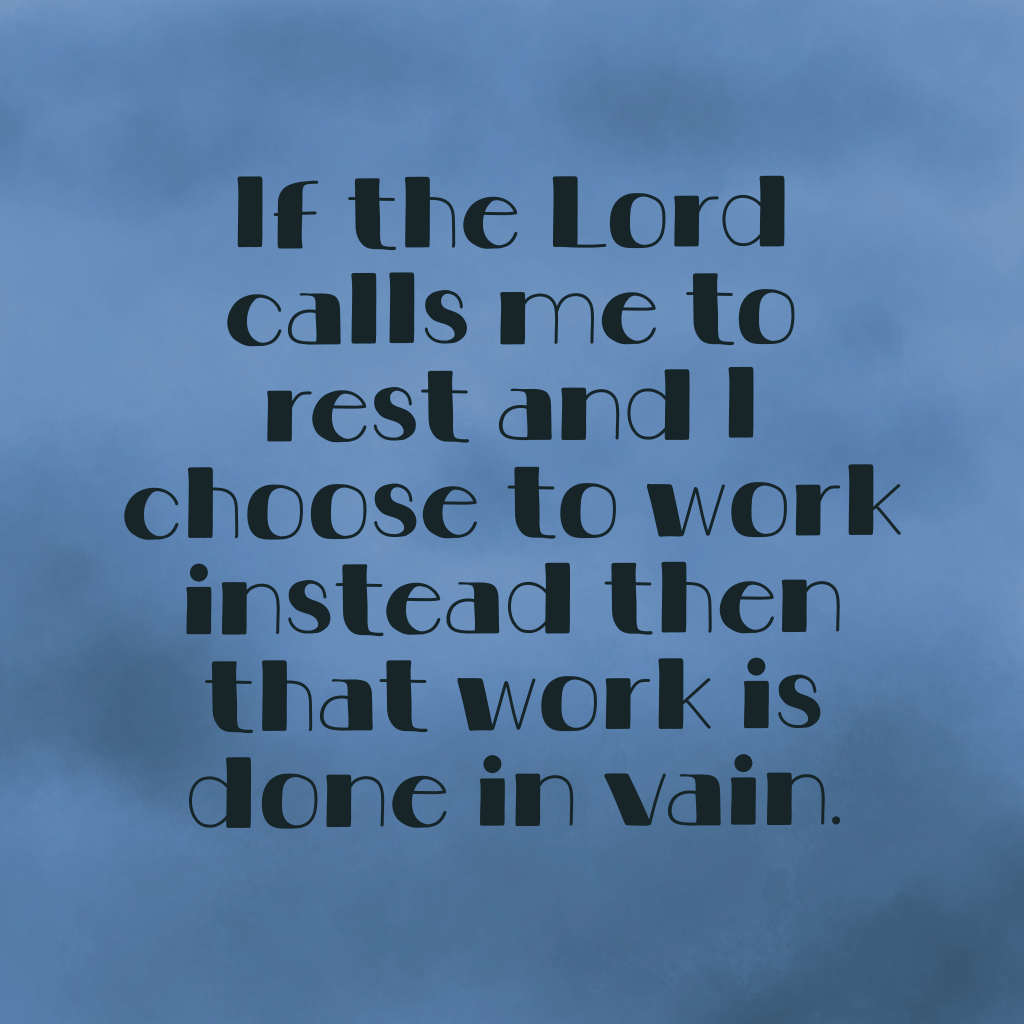 If the Lord calls me to rest and I choose to work instead, that work is done in vain. He’s not calling me to it right then. And that might be work that He does have for me to do, but if He’s telling me to rest first and I ignore that, then I’m actually being disobedient to Him. I’m not working for Him at that point, I’m working for me. For some sense of accomplishment in myself. For some extra bit of value and worth derived from my own efforts.