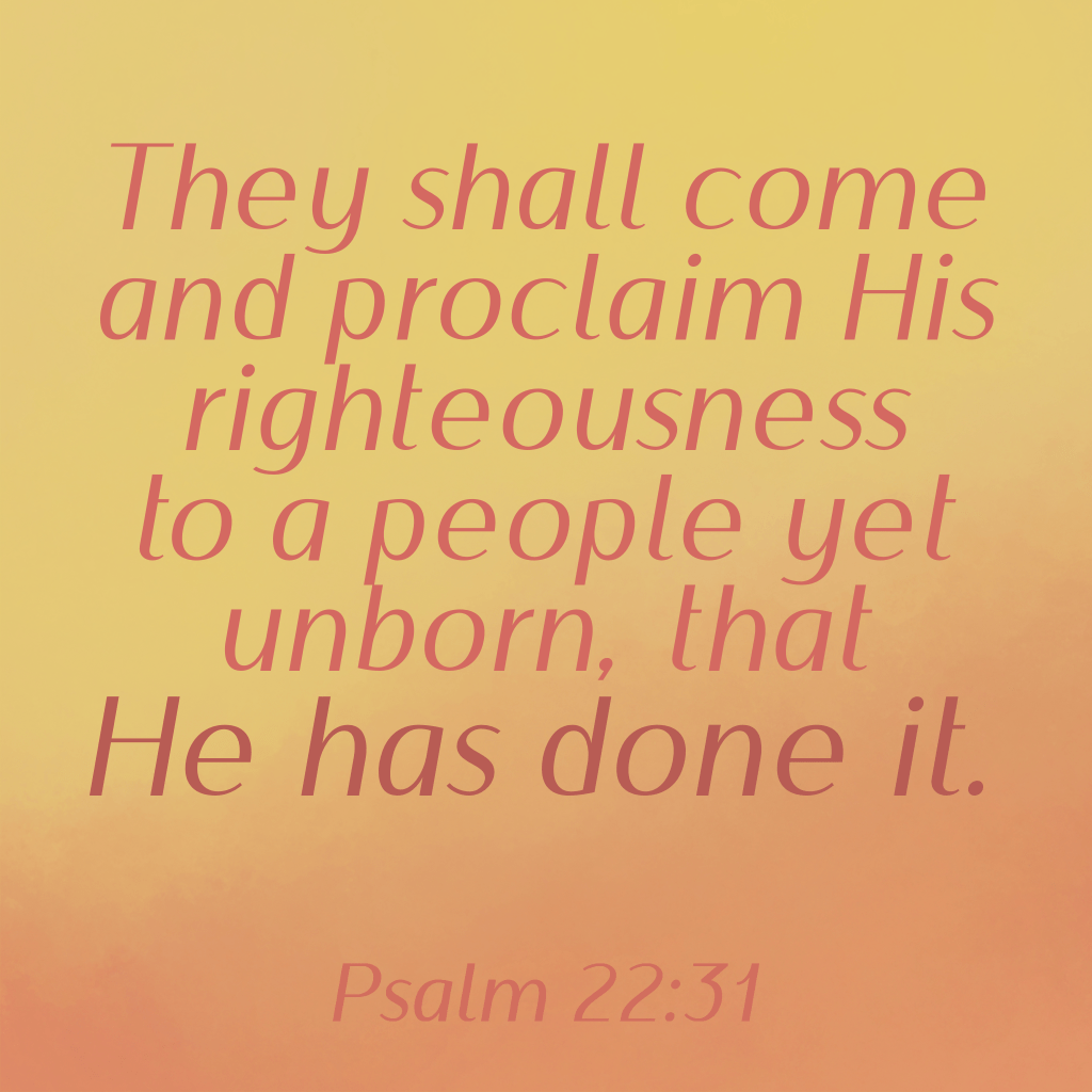 “They shall come and proclaim His righteousness to a people yet unborn, that He has done it.” Psalm 22:31
