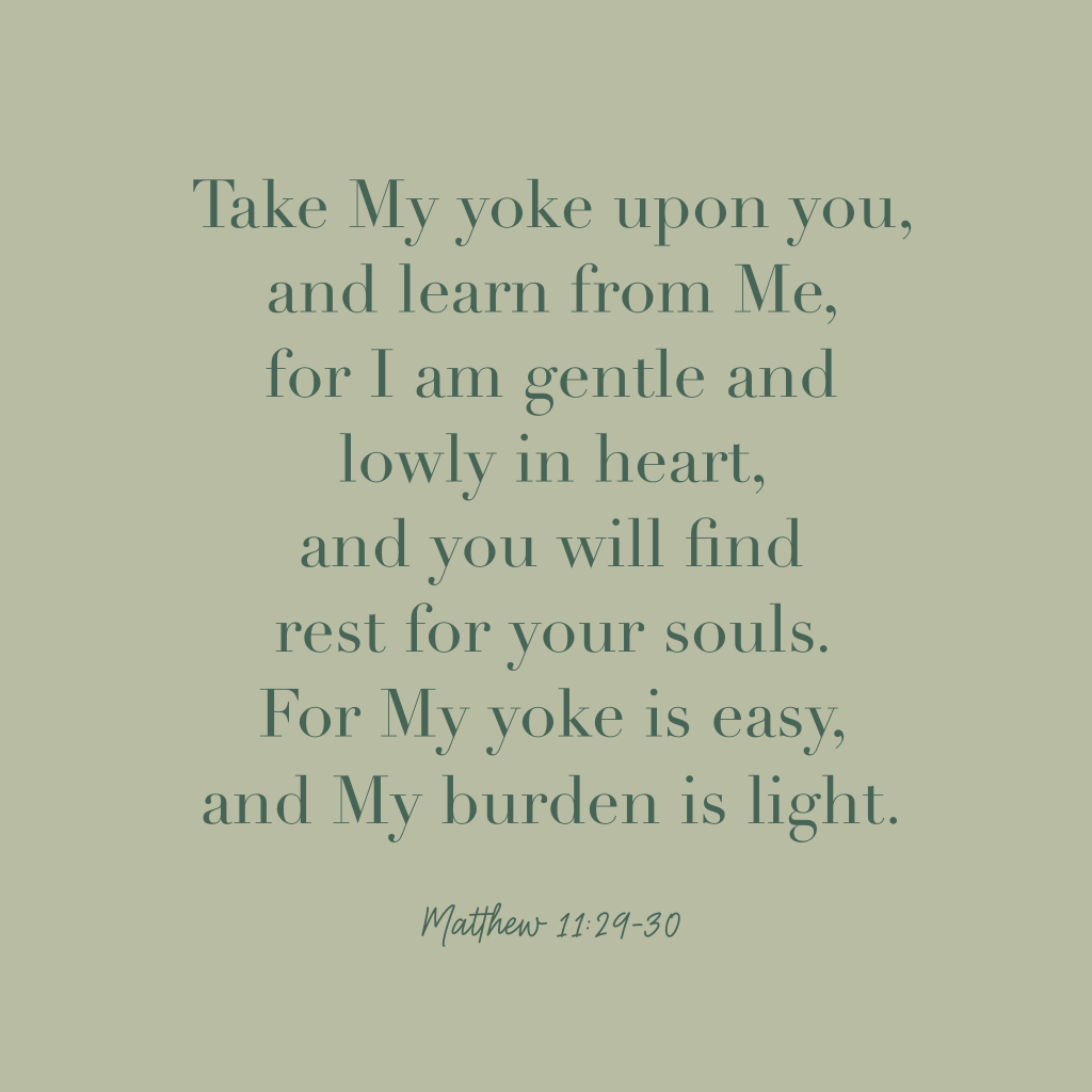 Jesus said that His yoke is easy and His burden is light. He was comparing it to the legalism of the time. Exchange your heavy legalism for the freedom that’s found in Christ.