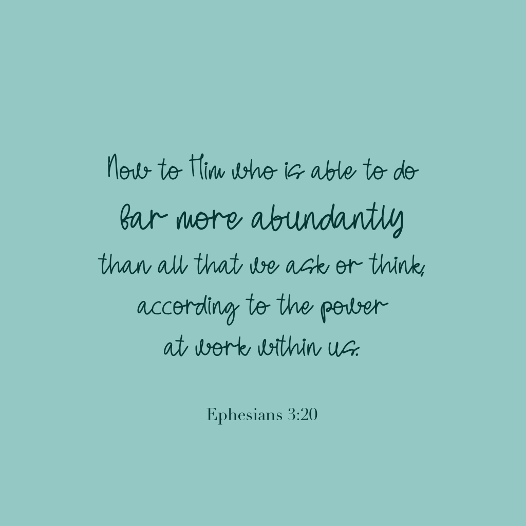 “Now to Him who is able to do far more abundantly than all that we ask or think, according to the power at work within us.” Ephesians 3:20