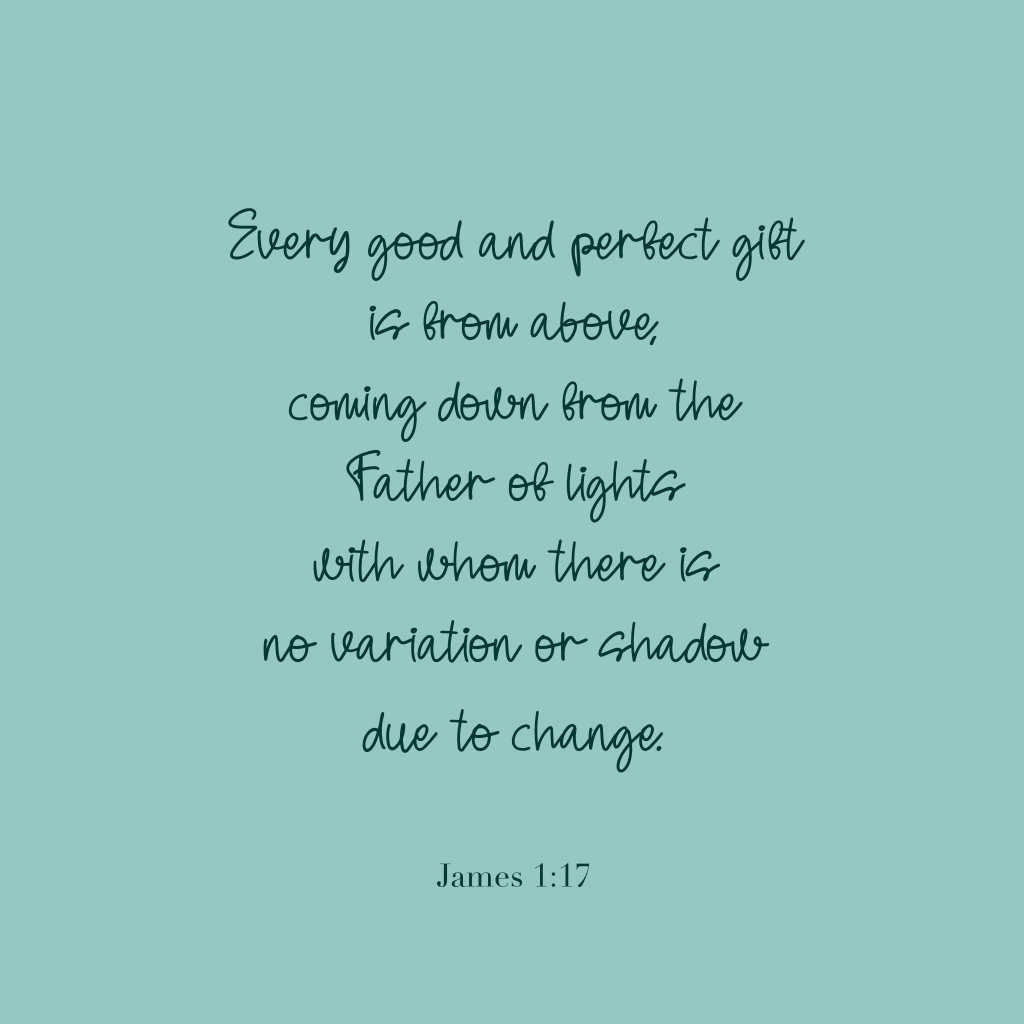 “Every good gift and every perfect gift is from above, coming down from the Father of lights with whom there is no variation or shadow due to change.” James 1:17