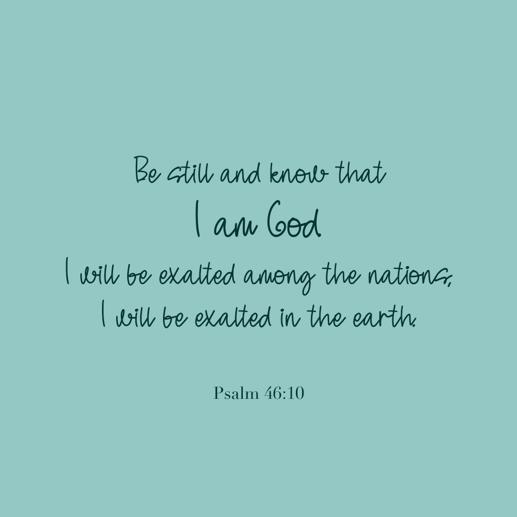 “Be still and know that I am God. I will be exalted among the nations, I will be exalted in the earth.” Psalm 46:10