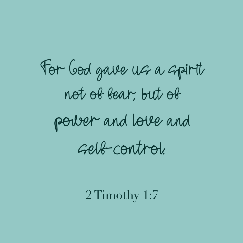 “For God gave us a spirit not of fear, but of power and love and self-control.” 2 Timothy 1:7
