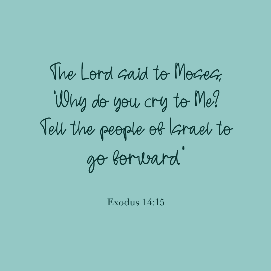 “The Lord said to Moses, ‘Why do you cry to Me? Tell the people of Israel to go forward.” Exodus 14:15